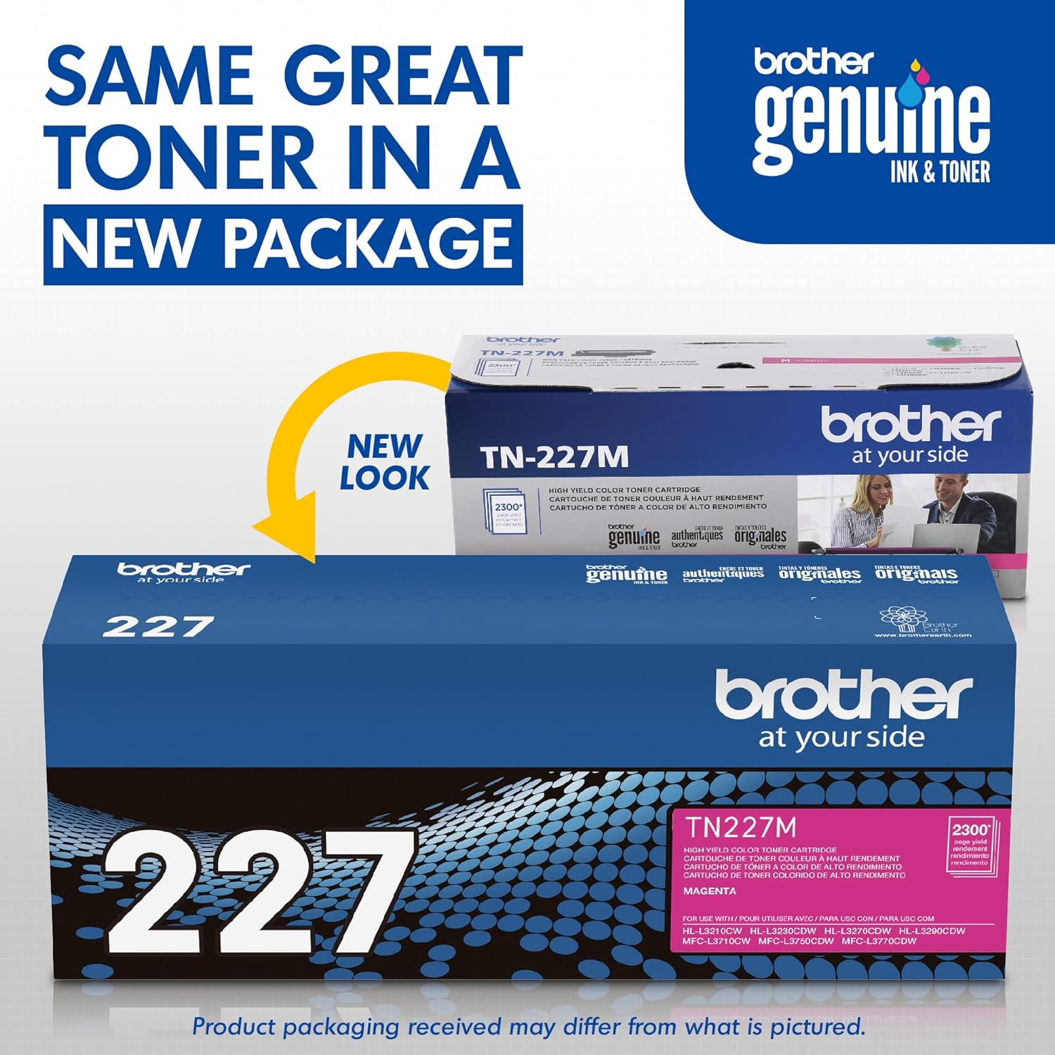 - DELIVERS SUPERIOR LASER PRINT QUALITY: Brother Genuine TN-227M high yield magenta toner cartridge delivers consistent rich, vivid professional color laser quality output you can rely on for up to 2,300-pages.(1)